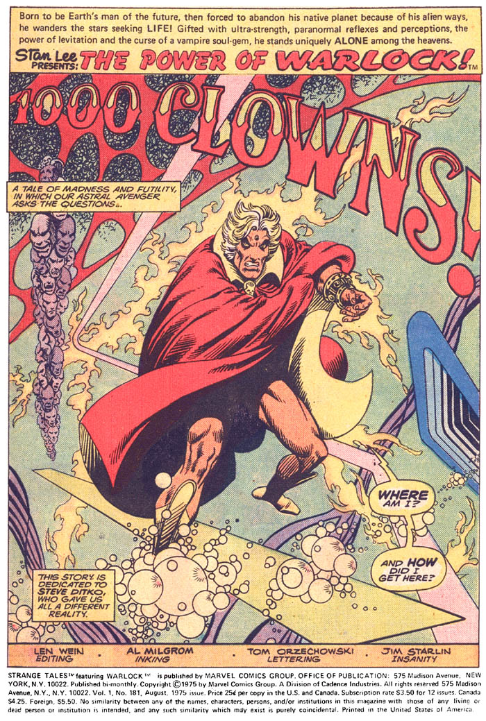 "...Henry , by " Clowns " do you mean that San/Roy-caricaturing ish o' STRANGE TALES that got Starlin fired from Marvel at the time when he managed to sneak it by The Powers and get it printed ?"