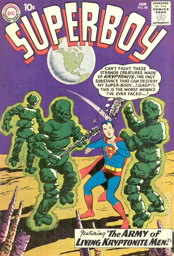 " JANUARY 1961 - BIRTH MONTH. The one behind the Kryptonite men was Lex Luthor, so this cover doesn't quite qualify for a transition cover to next month..."